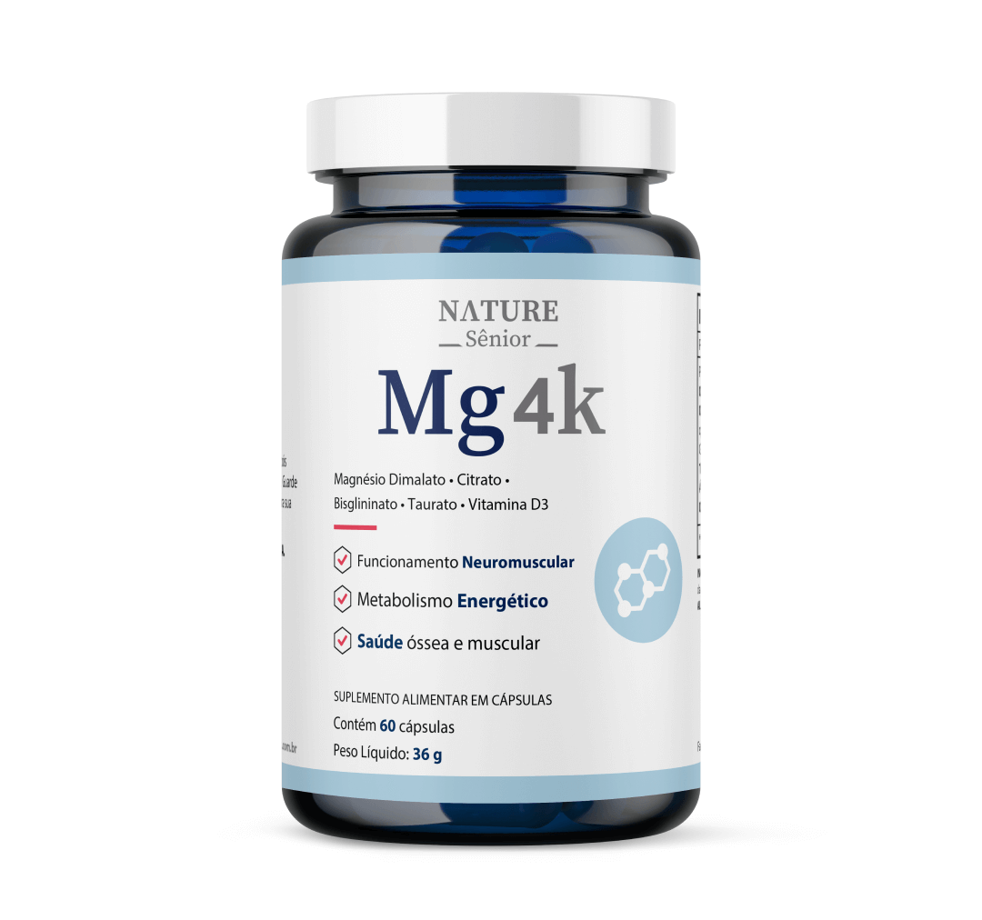 Mg4K é um suplemento premium desenvolvido por nutricionistas, formulado com uma sinergia quádrupla de magnésio de alta qualidade: dimalato, citrato, bisglicinato e taurato. Essa combinação foi criada para garantir maior biodisponibilidade e melhor absorção no organismo.